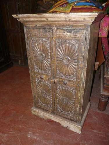 !±8± Antique India Jaipur Style Carved Sunburst Teak Armoire Side Cabinet 41x25x14